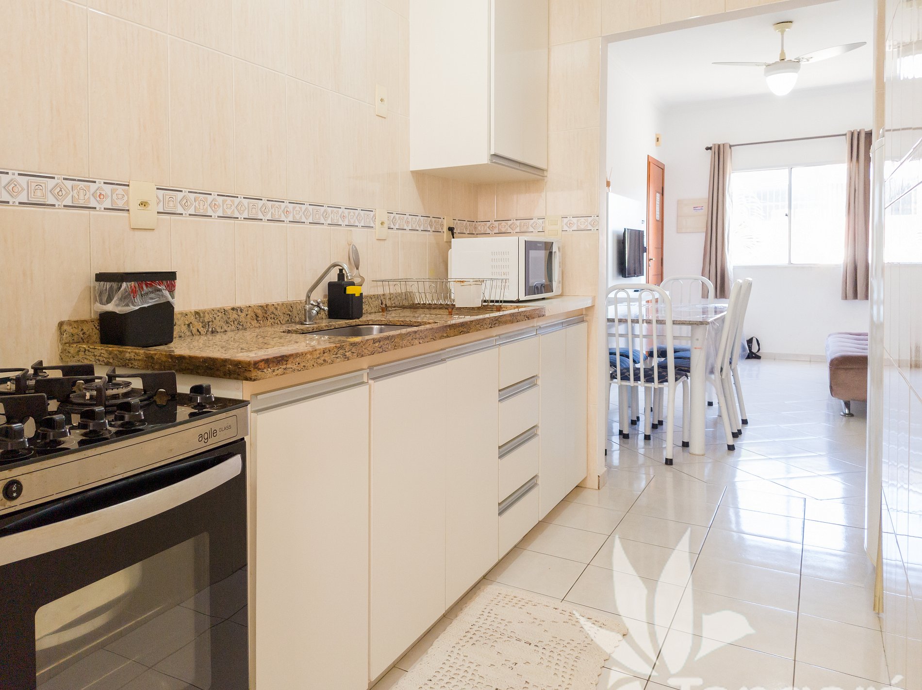 -Equipada com geladeira, fogão, micro-ondas, utensílios de cozinha e tudo o que você precisa p/ preparar refeições deliciosas.