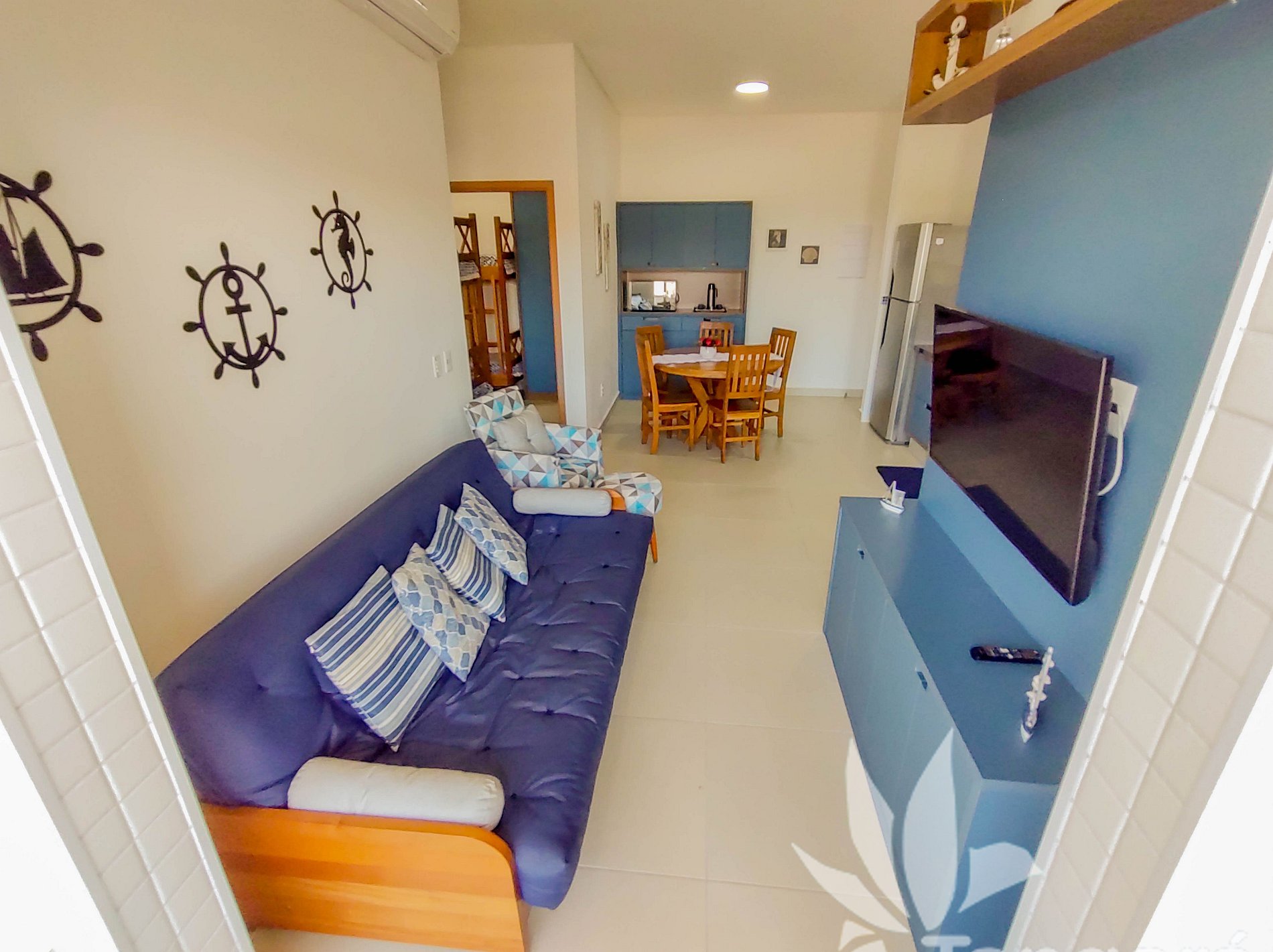 O apartamento conta com uma ampla área de convívio: