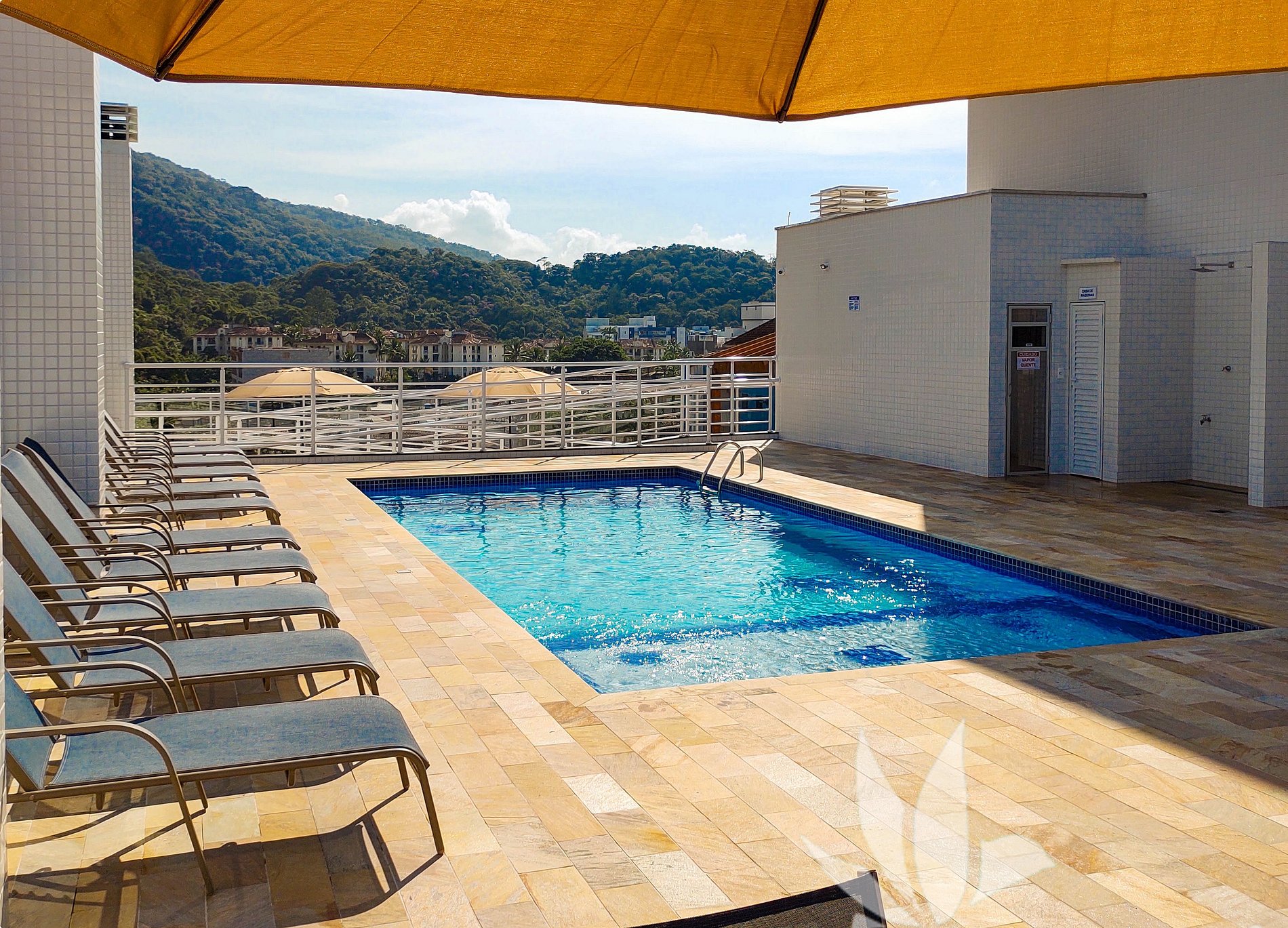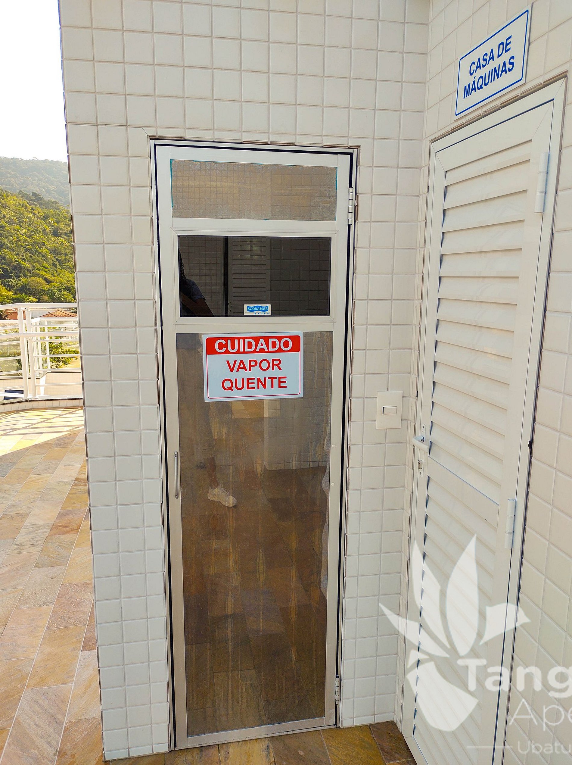 E uma sauna a vapor, perfeita para momentos de bem-estar e descanso após um dia de praia.