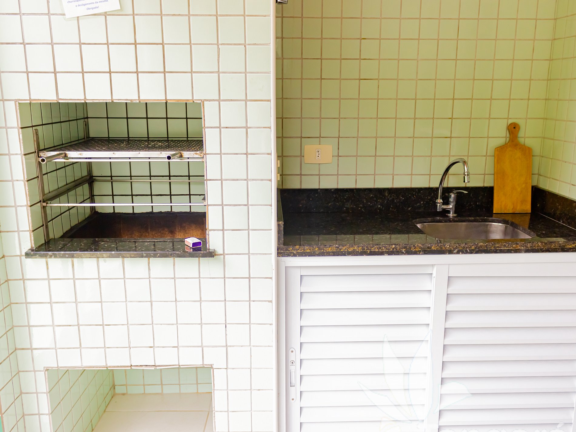 ► Sacada gourmet com churrasqueira a carvão, ideal para um churras;