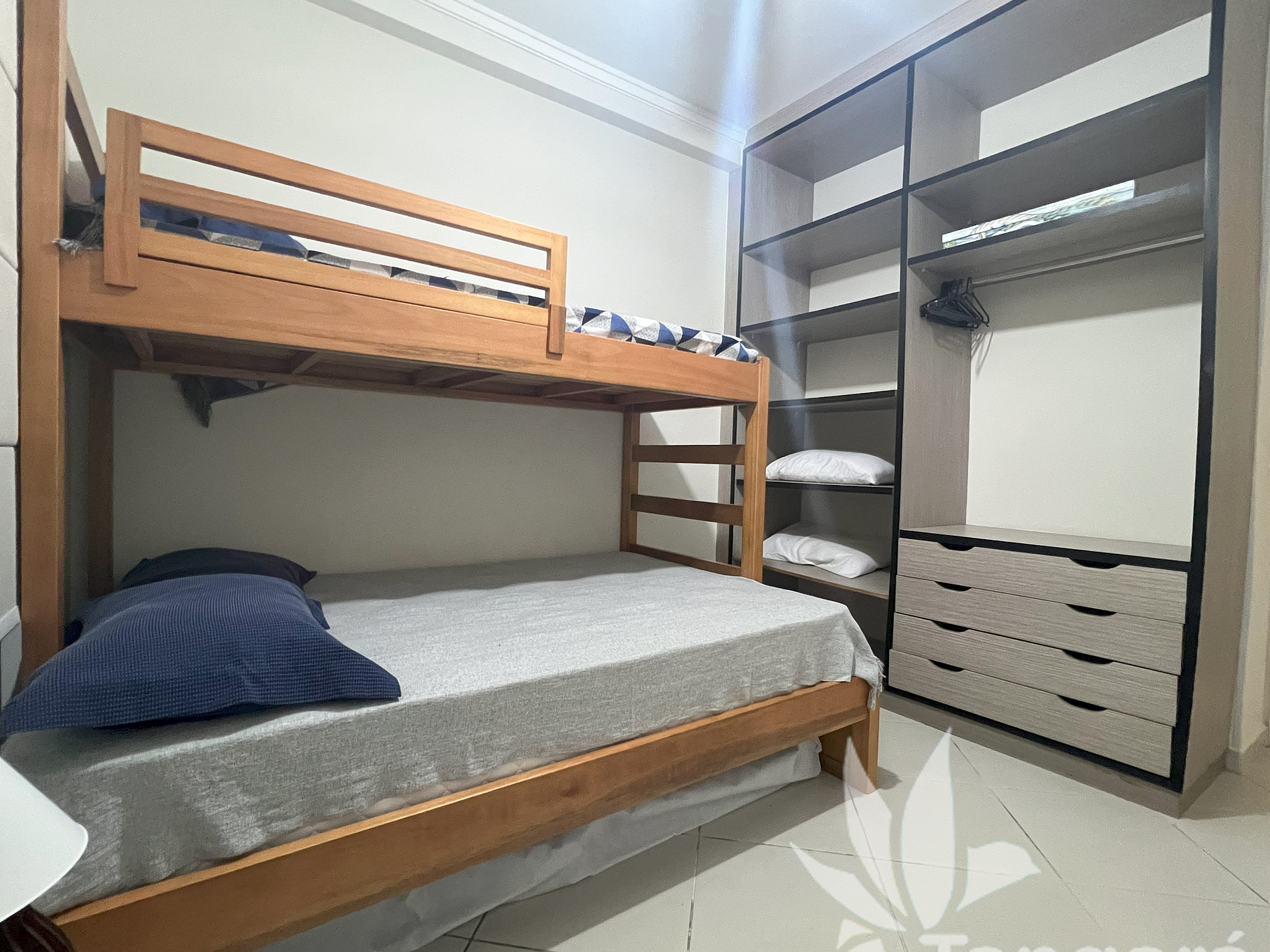 ► Quarto com duas beliches de padrão alto (sem bater a cabeça no andar de baixo) e guarda-roupas planejados;