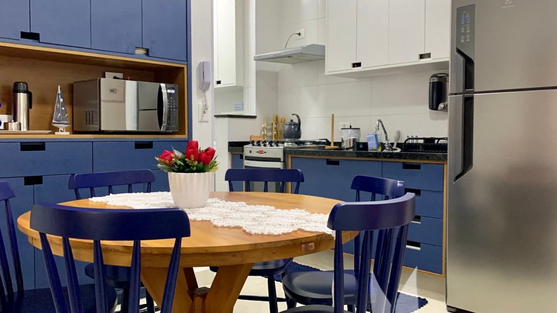 - Cozinha muito bem equipada, com armários planejados e todos os utensílios novinhos;
