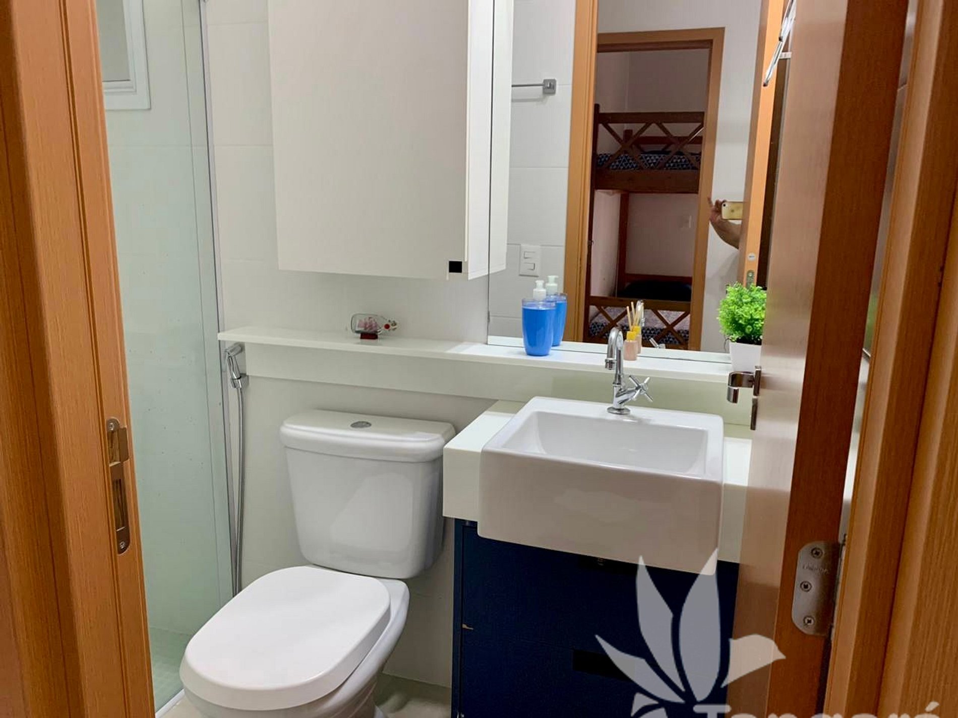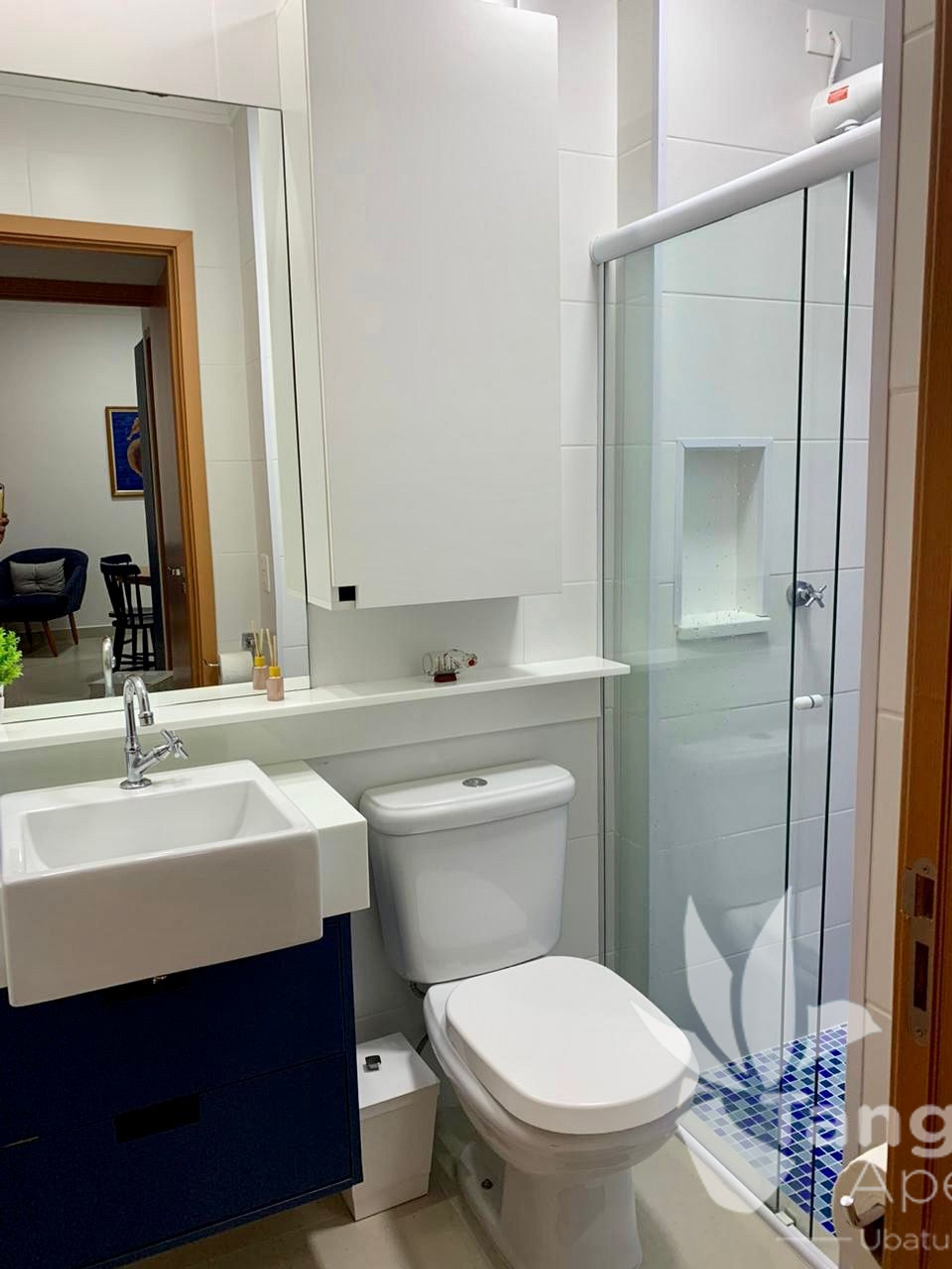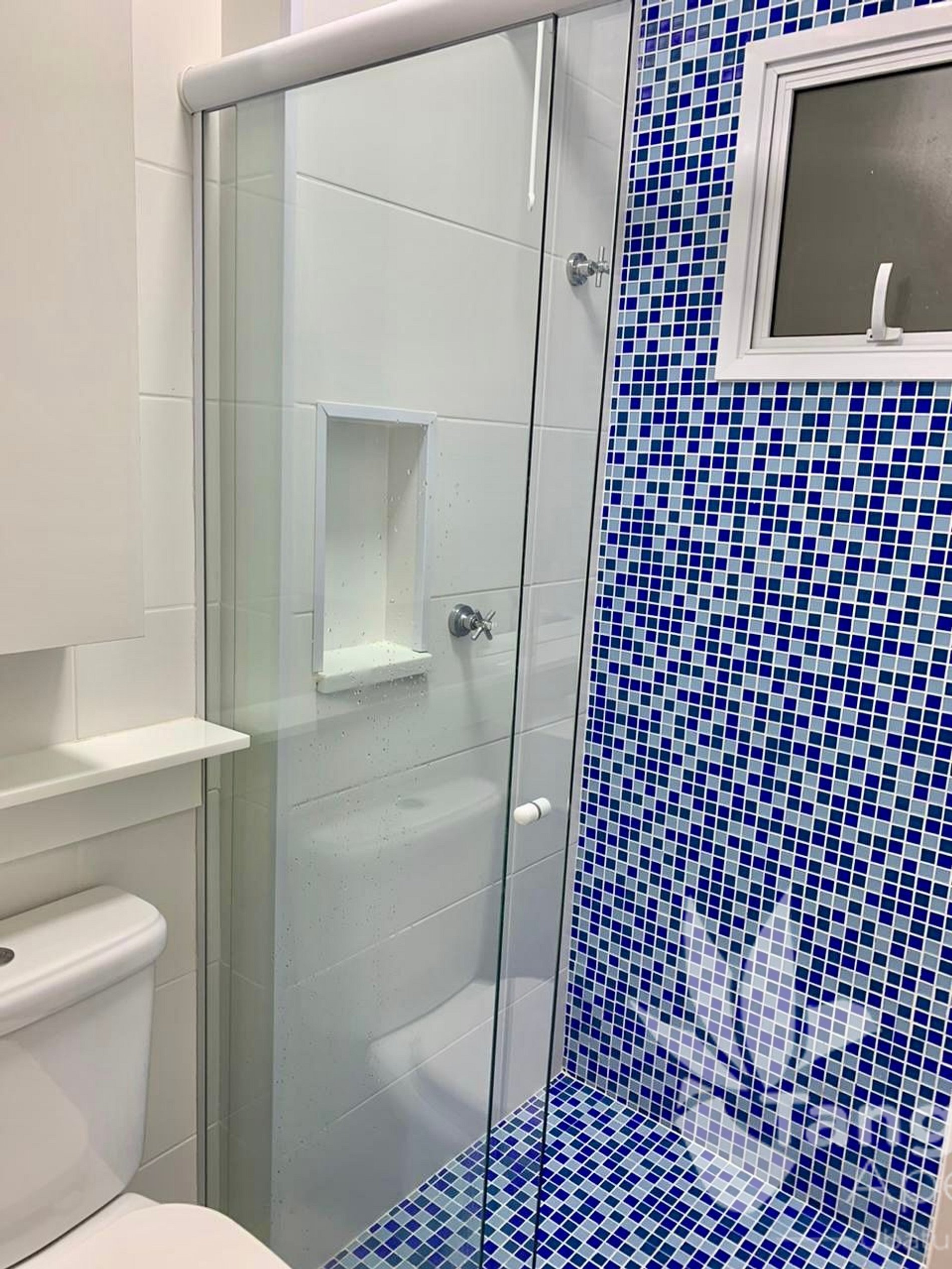 - Banheiro social com box de vidro;