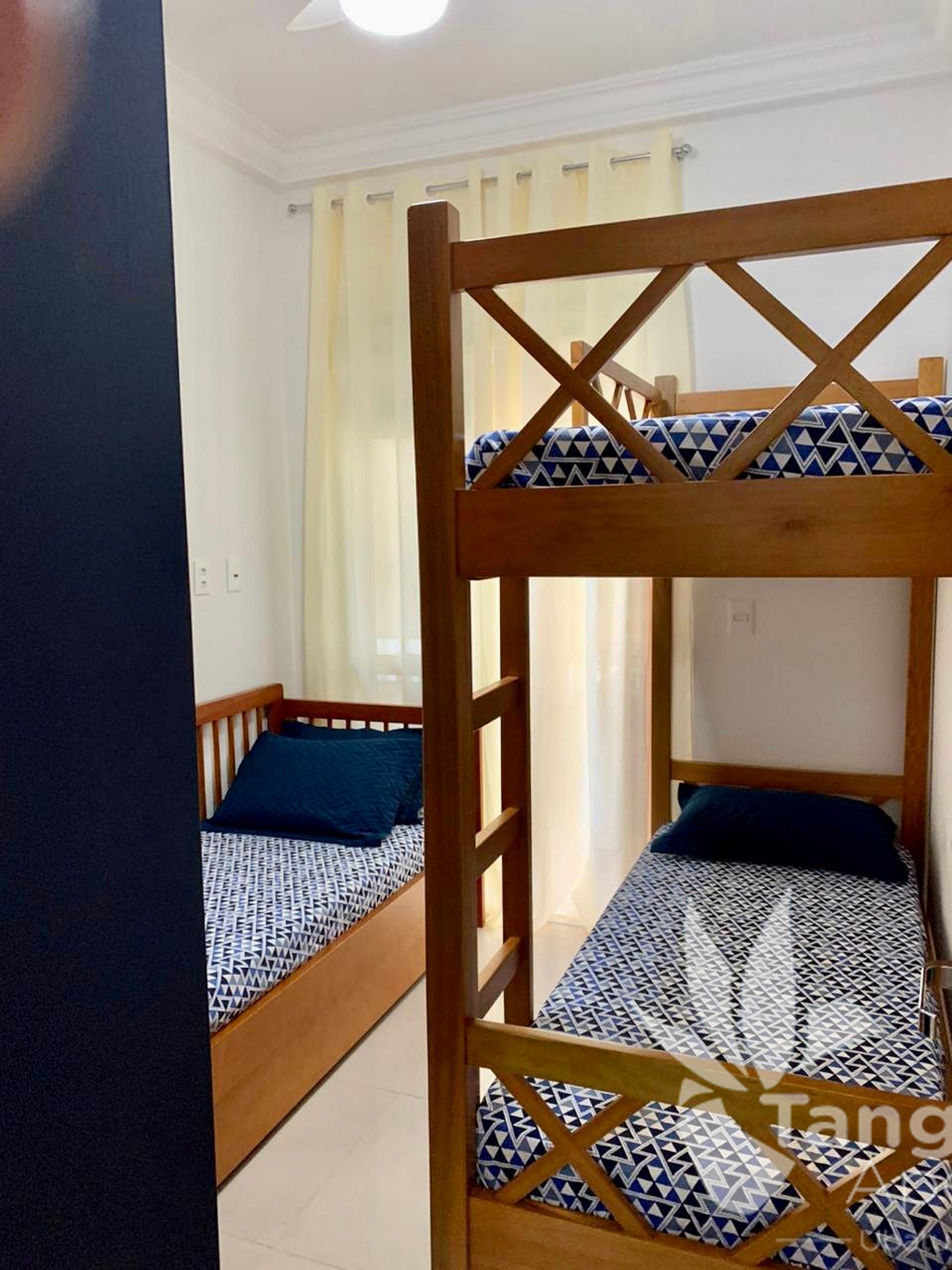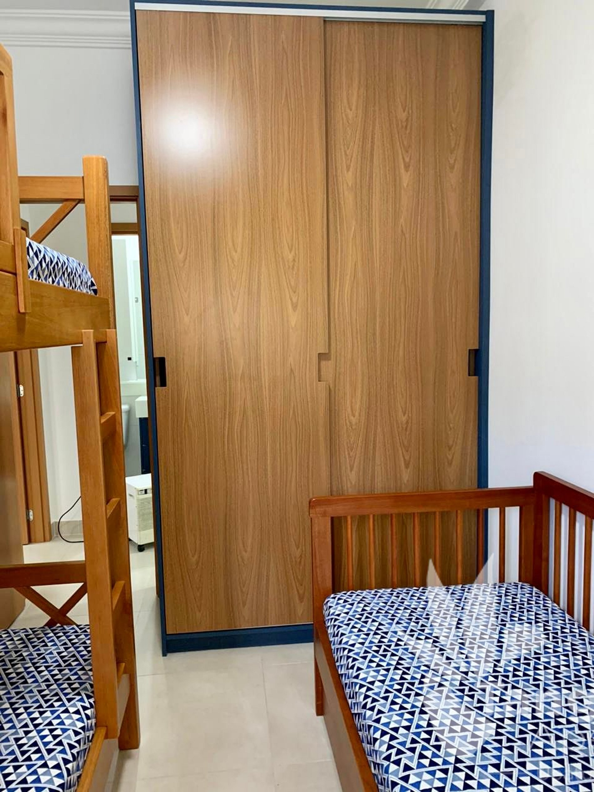 - Quarto com uma beliche com padrão alto (assim, quem não batemos a cabeça quando estamos no andar de baixo) e uma cama de solteiro, além de guarda-roupas planejados;